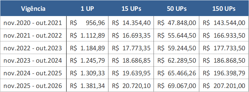 A Unidade Previdenciária (UP) é um valor em R$ usado em alguns cálculos de benefícios da Fundação.